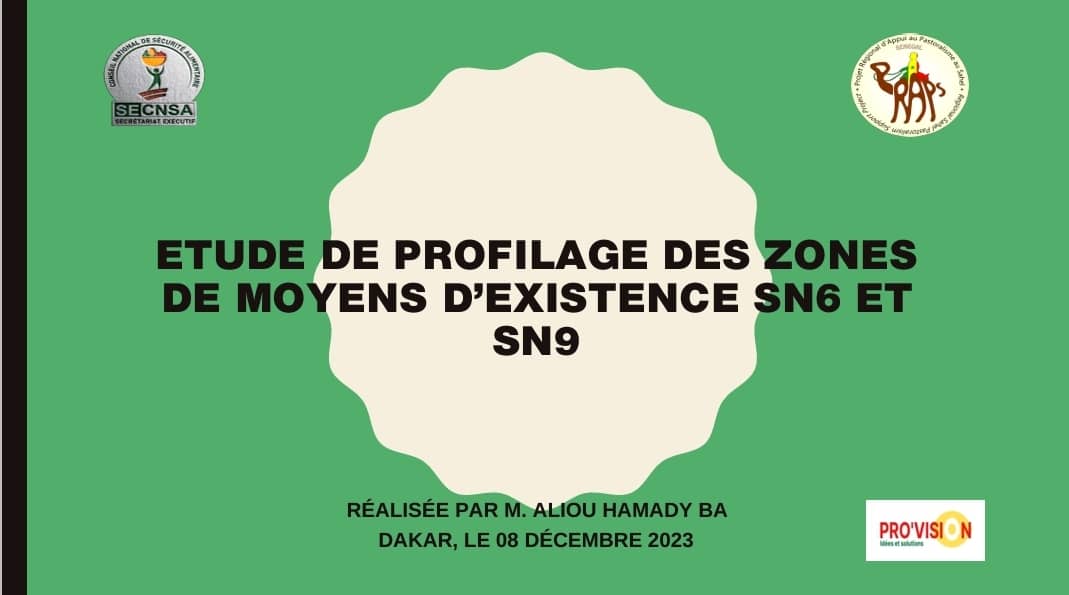 Le Directeur Général de PRO’VISION a procédé à une première restitution de l’étude de profilage des zones de moyens d’existence SN6 et SN9, ce vendredi 08 décembre 2023 aux Résidences Mamoune. Sur invitation du PRAPS2-SN, les participants ont pris connaissance des différents profils de ménages pastoraux et agropastoraux au Sénégal.